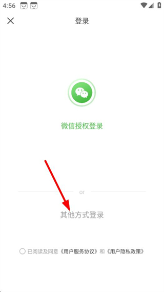 3、在登录选择页面,点击其他方式登录选项,进入手机号登录页面。