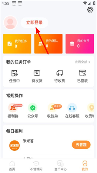 2、在个人页面,点击立即登录按钮,进入登录选择页面。