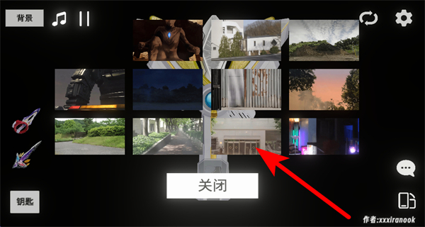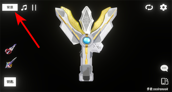 2、完成神光棒变化形态后,点击界面左上角的背景按钮,这是打开背景选择界面的关键操作,可解锁不同场景背景的切换选项。