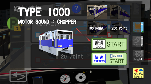 2、选定车型后,可选择普通或快速两种模式启动线路,普通模式适配常规通勤,快速模式对应长途快线,点击对应START按钮即可进入任务。