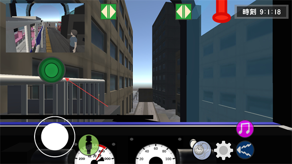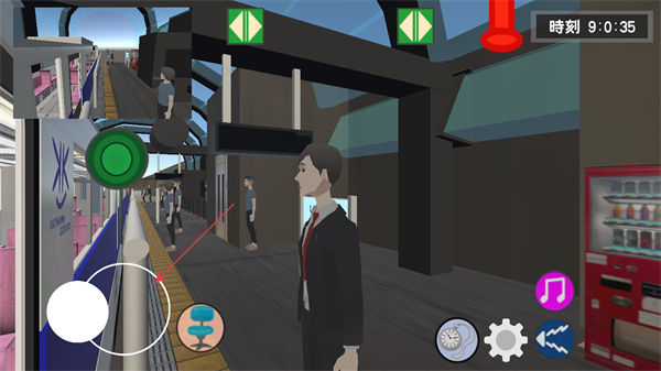 3、进入游戏界面内,可使用左侧操作杆环顾四周的场景,此时站台有乘客正在上下车,需确认所有乘客安全就座、站台无滞留人员后,再关闭车门。