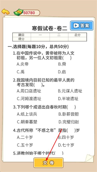 4、完成任务对应的互动后,点击交卷提交结果,获取资金奖励。