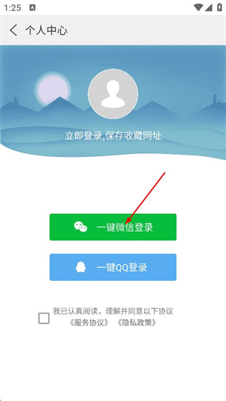 3、在个人中心页面,选择一键微信登录,勾选后完成账号登录。