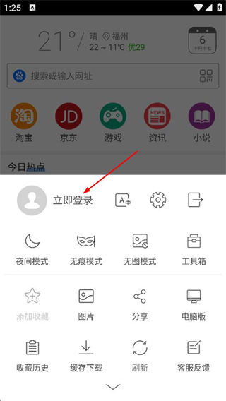 2、在功能菜单中,点击立即登录选项,进入个人中心页面。