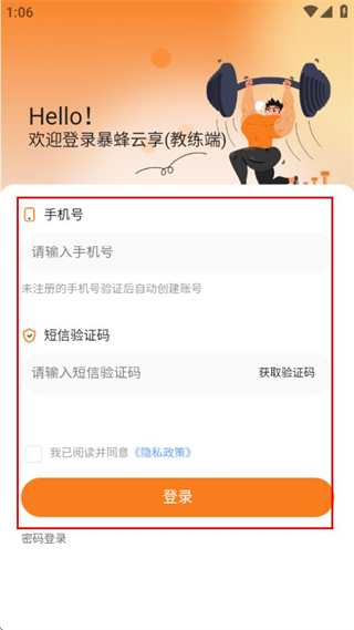 3、在登录页面,填写信息并勾选协议后,点击登录完成账号登录。