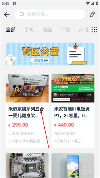 2、在闲置物品列表页面,选择目标闲置物品,点击进入详情页面。