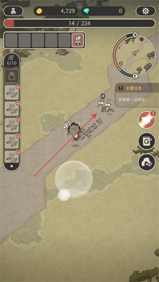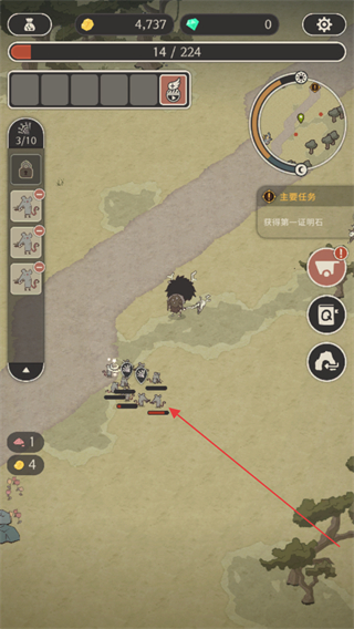1、操控角色队伍移动,推进获得第一只明石主线任务,向目标怪物方向前进。