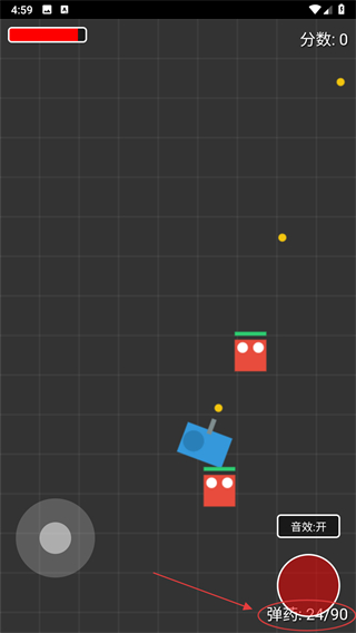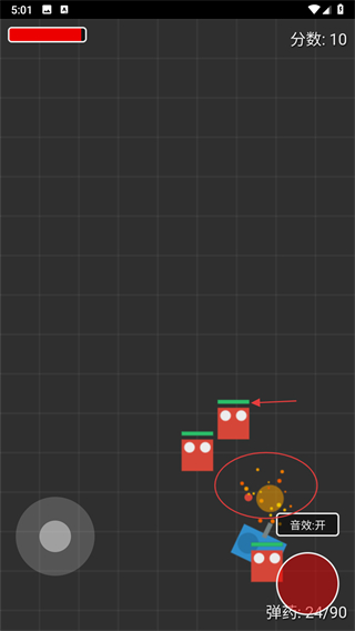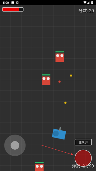 1、点击右侧红色按钮发射弹药,攻击场景中的敌人目标,命中消灭可提升分数。