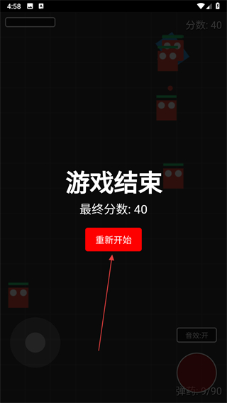4、游戏结束后查看最终分数,点击重新开始按钮可再次游玩,挑战更高分数。