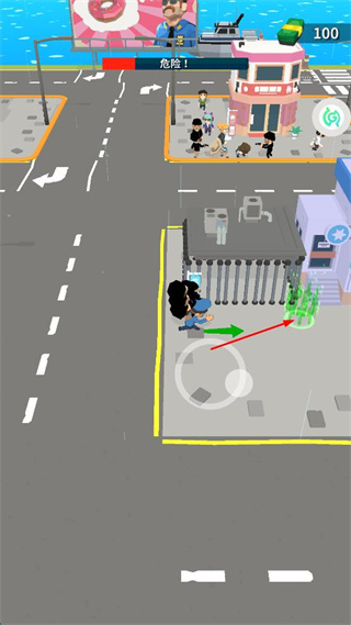 3、按照绿色箭头的指向,操控警察向目标方向移动,靠近对应的设施位置。