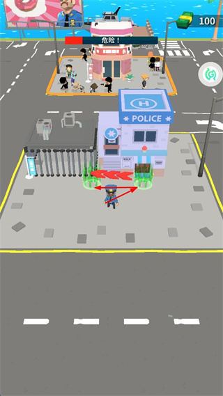 1、观察界面中警察所处位置,跟随红色箭头指引,移动警察至对应绿色区域处。
