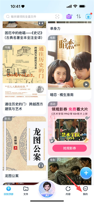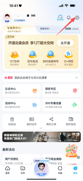 1、进入中国移动云盘首页,点击底部的我的,进入首页。