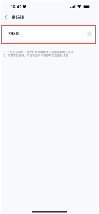 5、在密码锁页面,开启密码锁的开关,进行下一步。