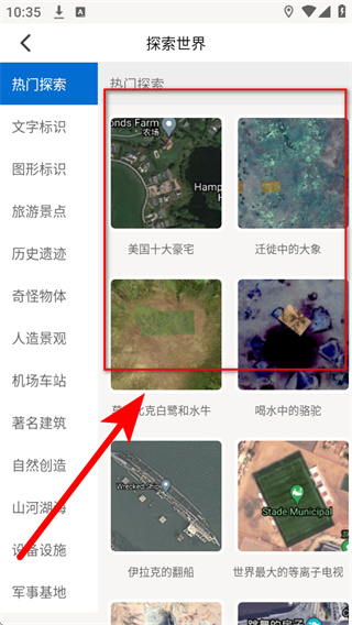 4、在内容列表中,选择具体的探索内容,点击即可查看对应的互动地图内容。