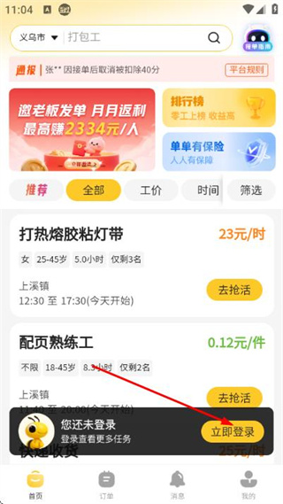 支持零工自主选择工作时间与地点,一键接单操作便捷,适配碎片化时间利用需求,让兼职赚钱更灵活省心,助力零工经济规范化发展。