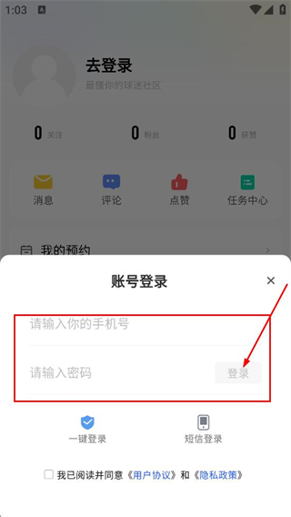 4、在账号登录页面,填写手机号与密码,点击登录,完成账号登录操作。