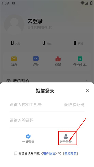 3、在弹出的短信登录的窗口中,点击账号登录选项,进行下一步。