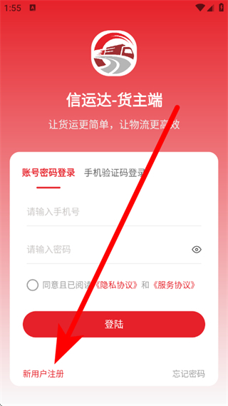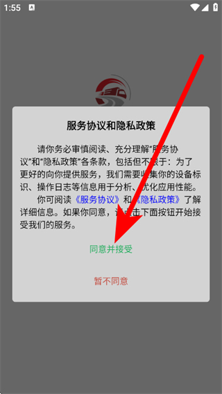 1、打开信运达货主端,点击同意并接受,进入登录界面。