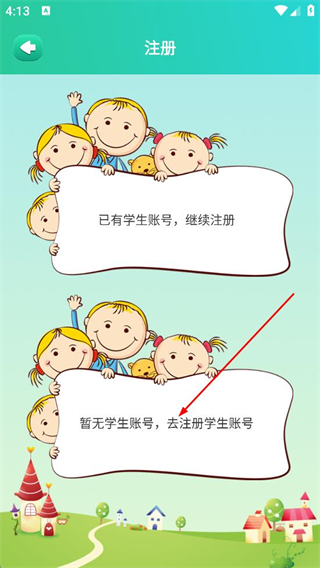 3、在注册界面,点击暂无学生账号,去注册学生账号选项,进入注册页面。