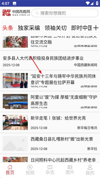 1、在中国西藏网的首页,点击目标文章,进入文章详情页。