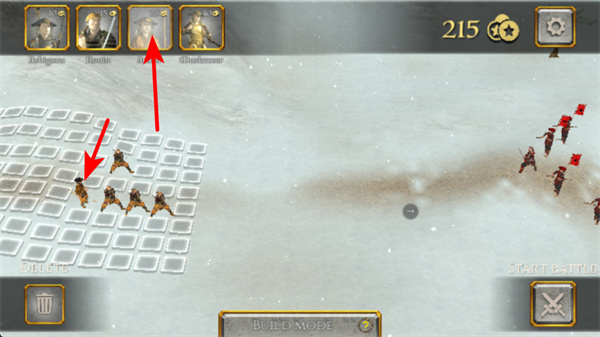 1、在部署界面,选择不同兵种如弓箭手并布置到战场网格中,形成远近结合阵容,这是提升部队攻防覆盖性核心操作,助力战斗压制敌方。