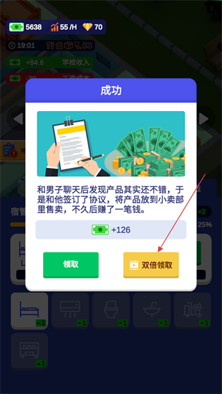 2、签订协议后点击双倍领取,观看视频可获得双倍金币奖励,快速积累校园资金。