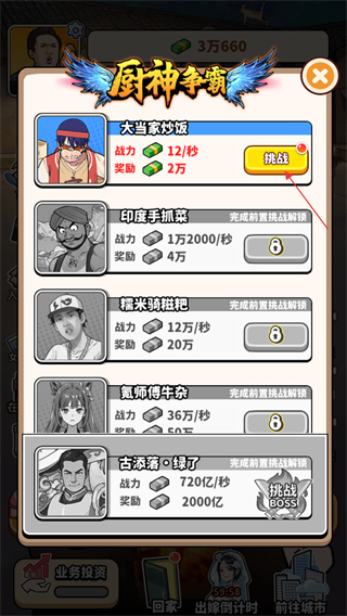 2、从厨神争霸的界面,选择不同对手发起挑战。