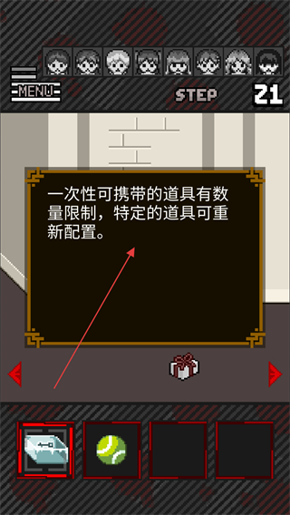 1、点击地图上的白色礼物盒会获得提示如留意一次性可携带的道具有数量限制,特定的道具可重新配置。