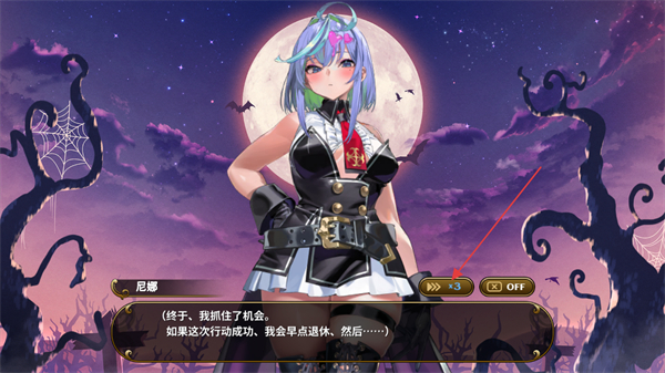 1、在尼娜的对话界面,阅读其台词后,可通过点击x3按钮快速推进对话,或点OFF关闭对话界面以推进流程。