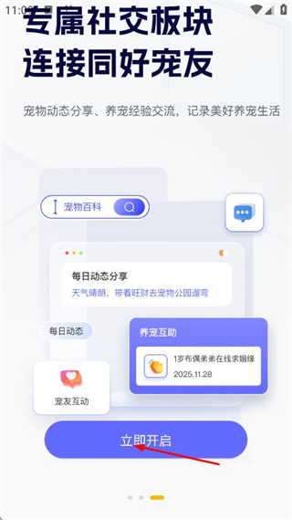 2、在专属社交板块引导页中,点击立即开启按钮,进入登录页面。