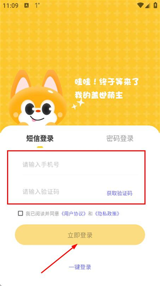 3、在登录页面填写手机号、获取并输入验证码后,点击立即登录按钮完成登录操作。