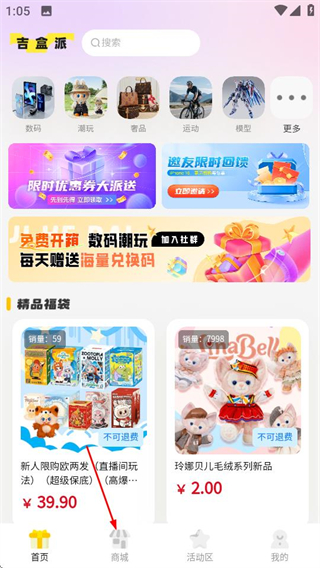 定期推出折扣、满减、新品体验等活动,用户可自由参与领取优惠,同步获取品牌上新资讯,及时入手热门盲盒,用更低成本享受盲盒购物乐趣。