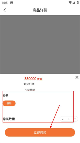 3、在商品详情页,点击立即购买按钮,进入商品规格选择弹窗。