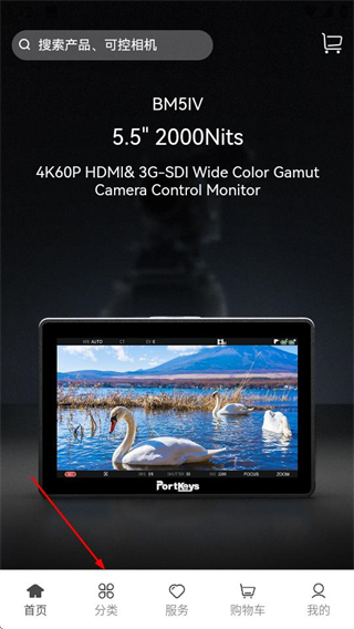 1、在PortKeys首页,点击底部的分类选项,进入商品分类页面。
