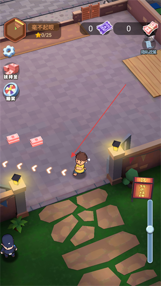 1、操控角色移动拾取场景中的钞票,积累初始资金用于解锁设施。
