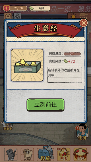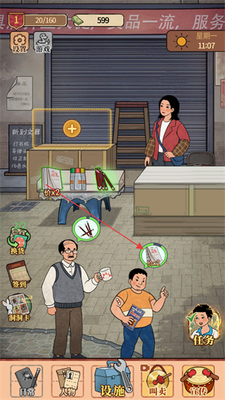 5、员工助力经营升级,可招募兼职学生负责补货,雇佣退休教师帮忙记账,不同角色分工提升店铺运转效率。