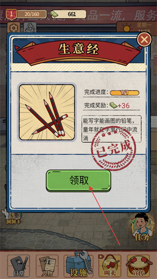 3、根据顾客需求,将货架上的铅笔递给顾客,推进生意经任务进度。