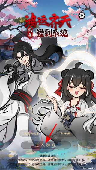 1、点击进入游戏按钮可开启鸿运齐天的修仙玩法,进入天赋选择、资源积累流程的基础操作,后续需通过天赋搭配、日常玩法推进修仙进度。