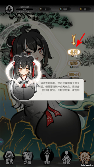 3、在主界面点击系统入口,可进入签到等功能界面,这是获取日常资源的关键操作,持续参与日常玩法能快速积累修仙所需的物资。