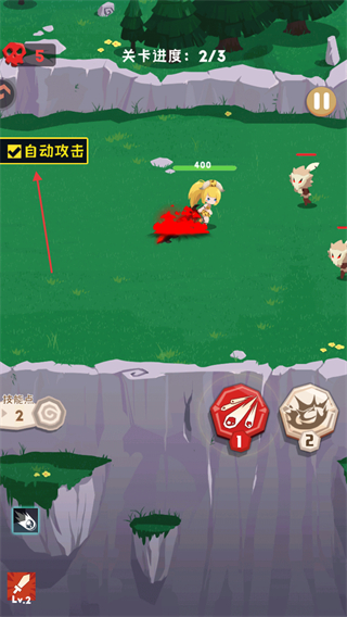 2、可以开启自动攻击功能,角色会自动攻击敌人,推进关卡进度。