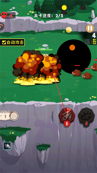 3、点击技能按钮释放技能,触发范围伤害,快速清理敌方单位。