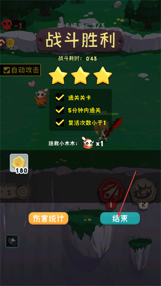 4、战斗胜利后点击结束,领取通关奖励,完成本次闯关挑战。