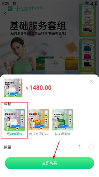 4、在规格弹窗,选择目标口味后点击立即购买,进入确认订单页面。