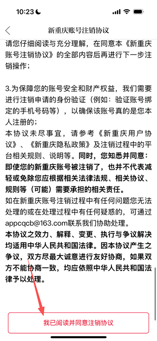 4、在协议页面,点击我已阅读并同意注销协议按钮,进入身份验证页面。