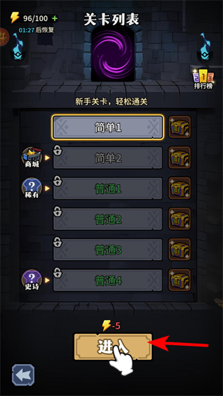 2、进入关卡列表界面后,选择已解锁的关卡,点击进入按钮,这是开启关卡挑战的基础操作,消耗对应资源后即可进入战斗场景。