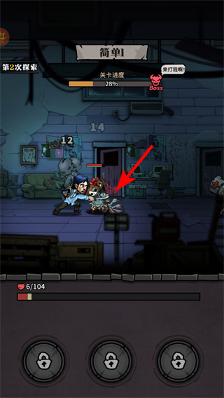 3、进入关卡战斗场景后,操控攻击出现的敌人,这是推进关卡进度的核心操作,每次攻击会积累关卡进度,同时提升角色的战斗收益。