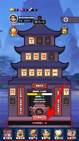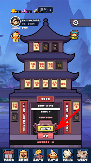 4、修炼的同时,还能通过底部的家族祖地、家族仓库等功能,管理家族资源与发展。