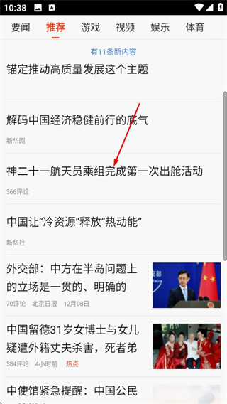 1、在新浪新闻首页,点击目标新闻,进入新闻详情页。