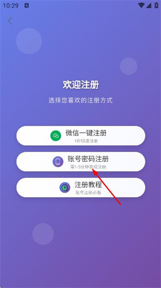 2、在欢迎注册页面点击账号密码注册选项,进入自定义注册页面。