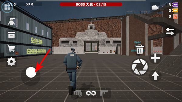 1、在BOSS战场景中操控移动按钮控制角色移动,这是调整战斗位置的关键操作,移动过程中需避开敌人的攻击范围,向有利的战斗区域靠近。